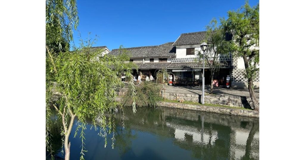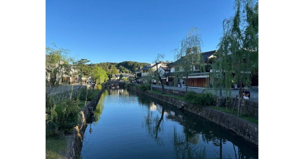 倉敷川沿いには、白壁の蔵と柳並木が続き、どこを切り取っても絵になる風景が広がっています。